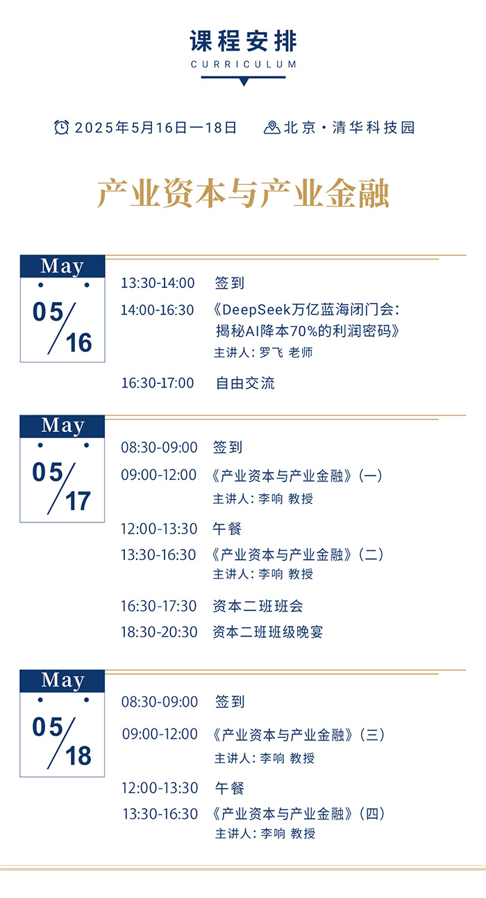 北清经管资本运营与股权投资项目5月16-18日课程安排