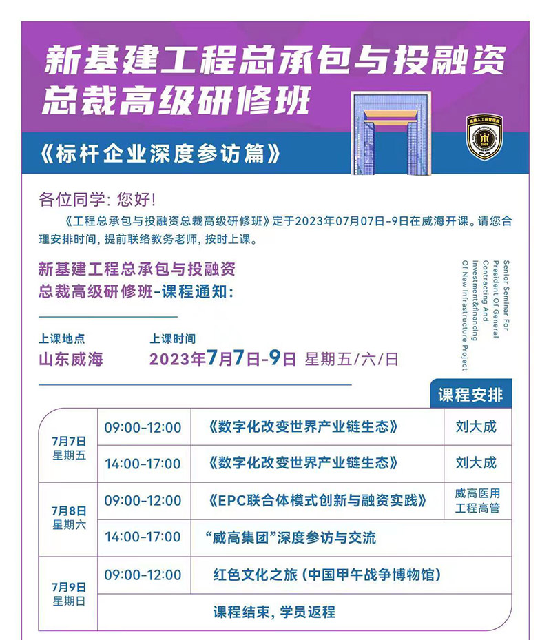7月8日《EPC联合体模式创新与融资实践》威高医用工程高管