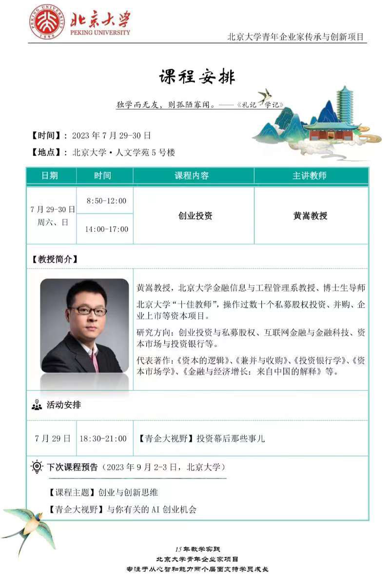 7月29、30日北京大学青年企业家传承创新课表