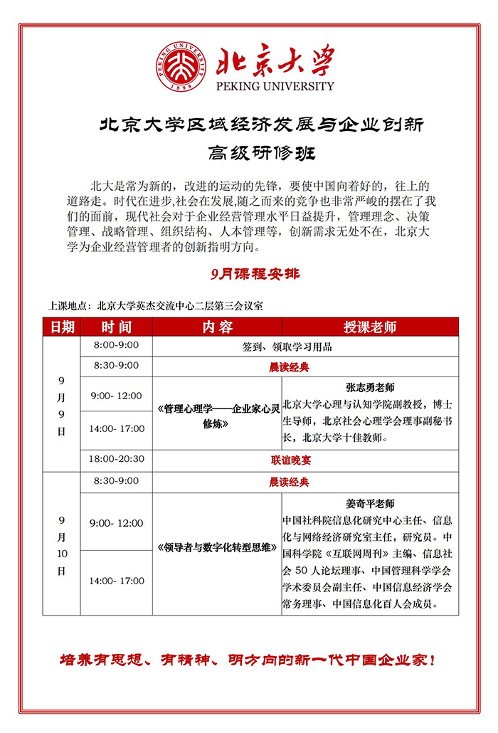 9月9-10日北大区域经济发展与创新研修班课表