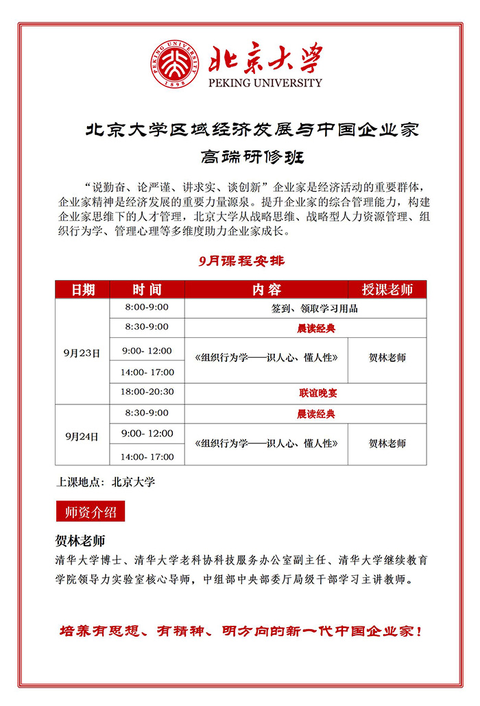 9月23、24日北大区域经济发展高端班——贺林主讲