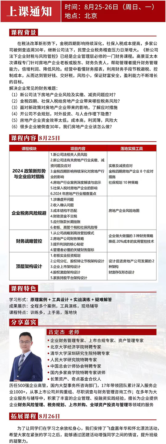 标杆地产EMBA高级研修班8月25、26日解决企业常见的财务难题-吕定杰老师