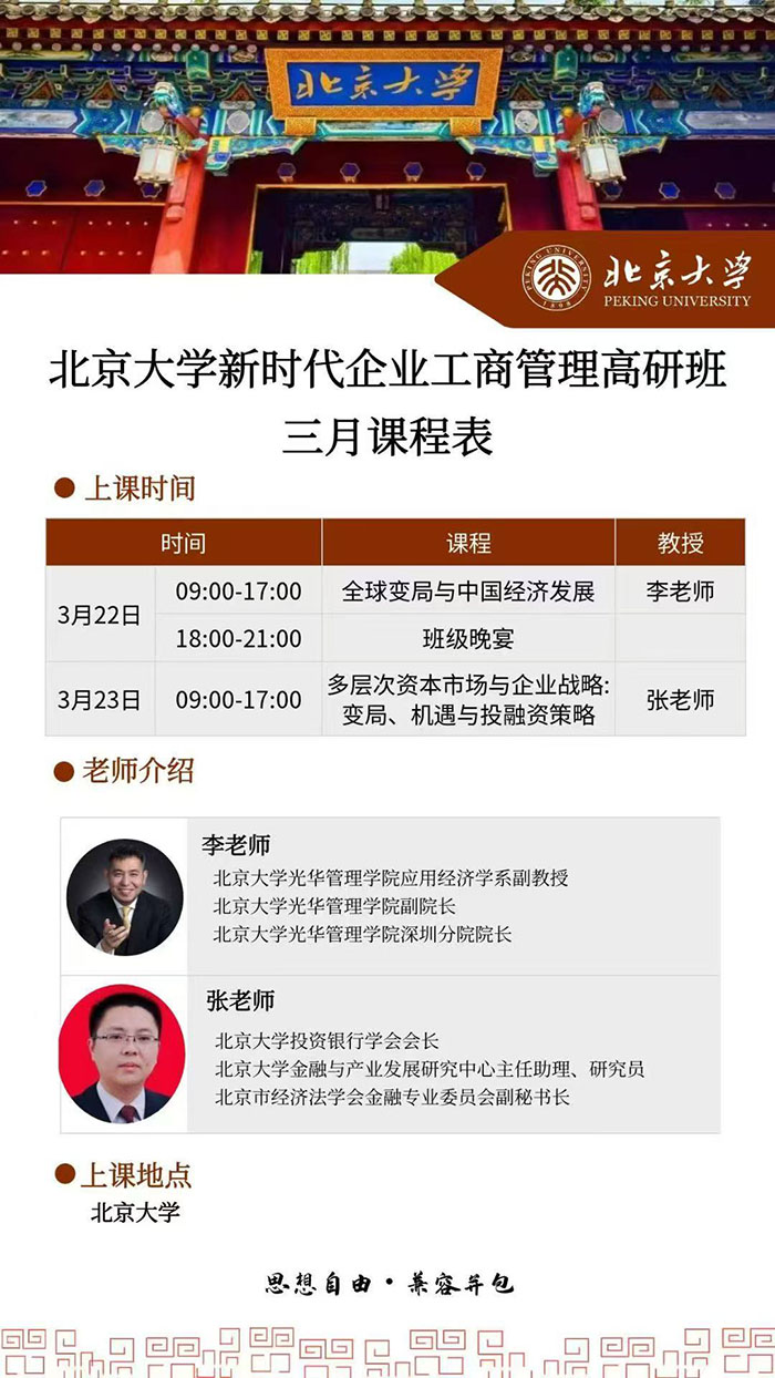 北京大学新时代企业工商管理高研班3月课程安排