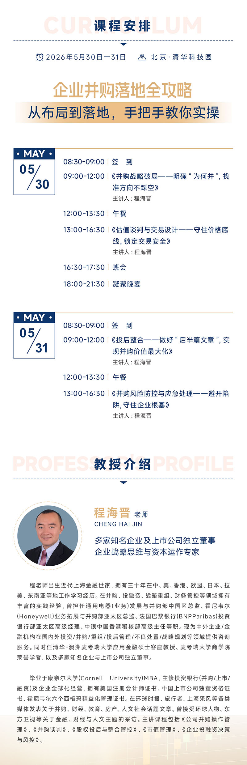 09:00-12:00 《投后整合——做好“后半篇文章”,实现并购价值最大化》 主讲人:程海晋