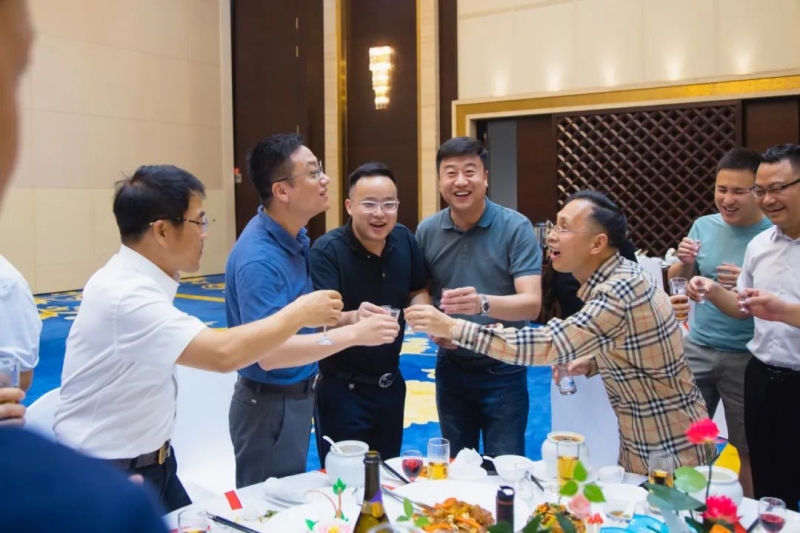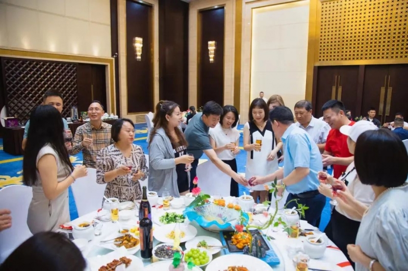 7月28日晚山东杏林齐升传媒董事长董其亭、淄博陆海联运有限公司副总经理韩静慧为同学们设置欢迎晚宴。