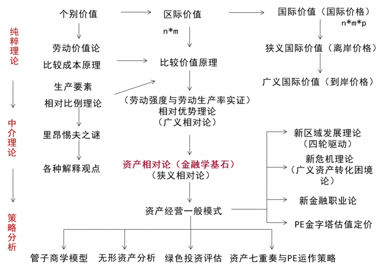 金融学最重要的是建立了一个理论框架:她包含了纯粹理论(以比较价值原理为代表),中介理论(以资产相对论为代表),策略分析(以股权投资策略为代表)三个大层次。