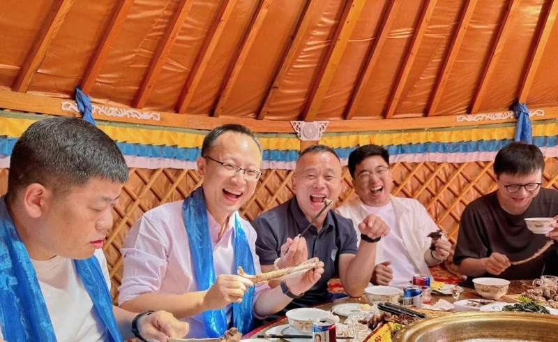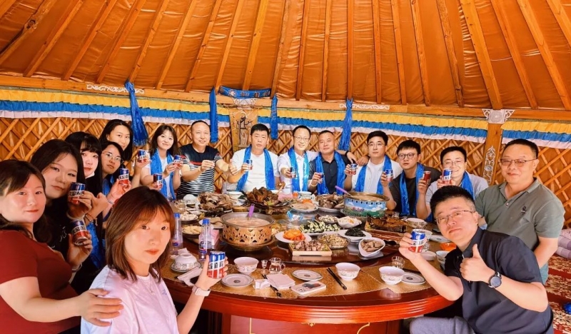 在访问结束后,我们一行人来到了壮美的希拉穆仁大草原。在蒙古包里,我们享用了香嫩的手抓羊肉、血肠、烤羊排等当地特色菜肴,还品尝了蒙古小果子、肚包肉、牛排骨等传统蒙古美食,还有浓香醇厚的奶茶。让我们感受到了内蒙大草原人民的热情好客和独特魅力。