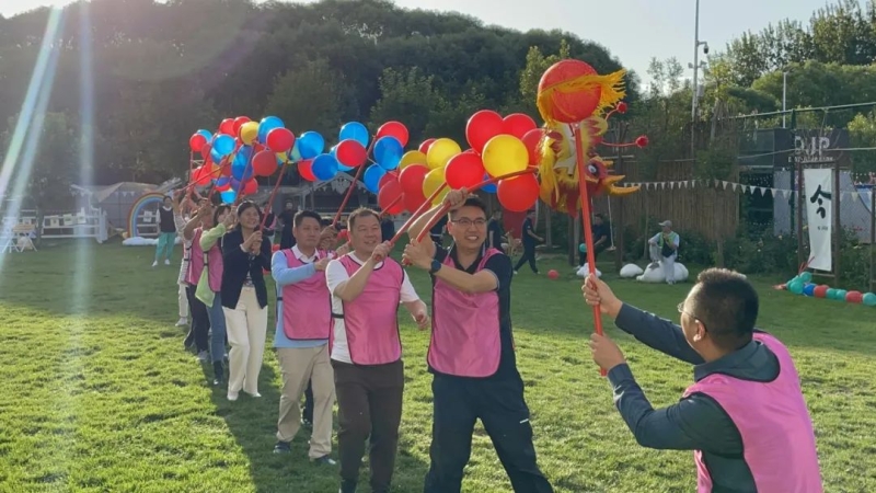 下午的时光,快乐不断加码,大家一起飞盘,一起设计属于自己队伍的舞龙,舞蹈动作,在露营基地忙碌的热火朝天,互相鼓励伴随着幽默揶揄,一群企业家飞舞着自己小组扎成的龙,度过了笑声歌声舞蹈不断的一天。
