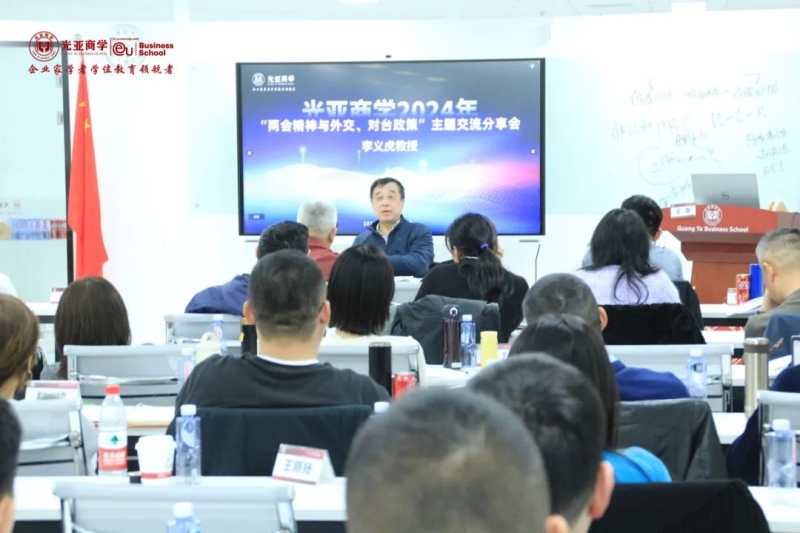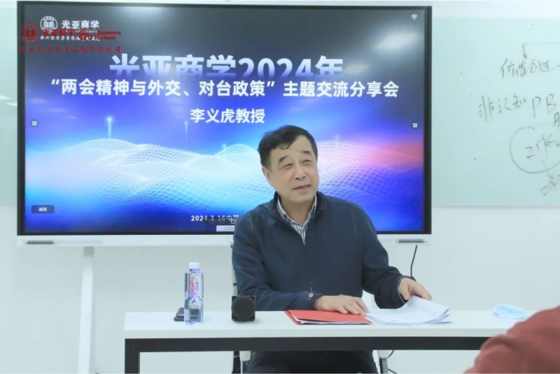 2024年全国两会,从政府工作报告到领导人参加政协联组会、人大代表团审议时的讲话,再到外长记者会,“反‘独’促统”“融合发展”“交流合作”等涉台表述高频出现,为外界提供了今年大陆对台工作的观察点。3月16日下午,光亚商学邀请到全国人大代表、北京大学台湾研究院院长李义虎教授为同学们讲解本次两会中两岸经济合作的挑战和机遇。