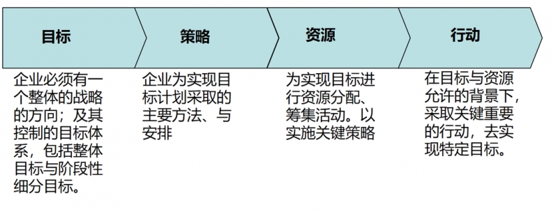 企业战略是对企业战略的各个部分进行研究与规划的过程,薛旭教授明确提出了策划的核心流程——目标、策略、资源、行动模型。