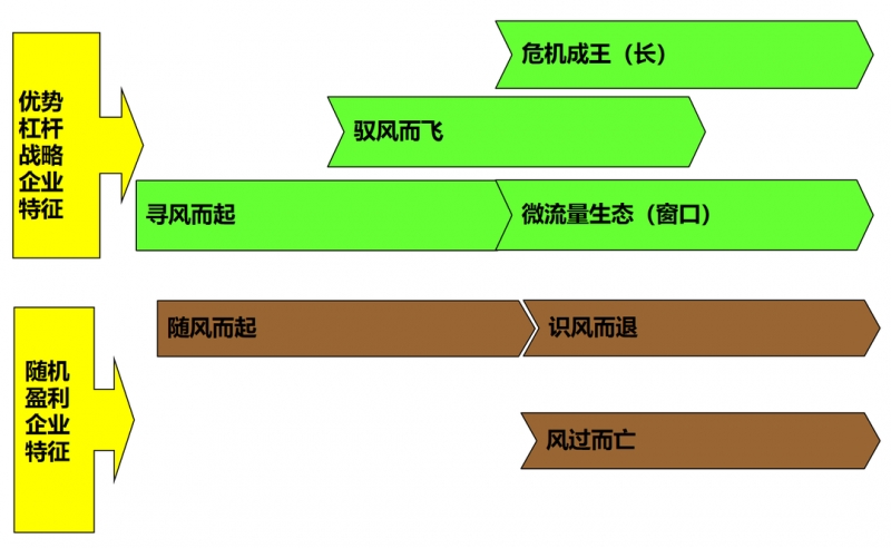 优势乘法战略盈利模式企业,拥有两阶段发展特征,即不但能抓机会成长,而且能是抓危机成长。