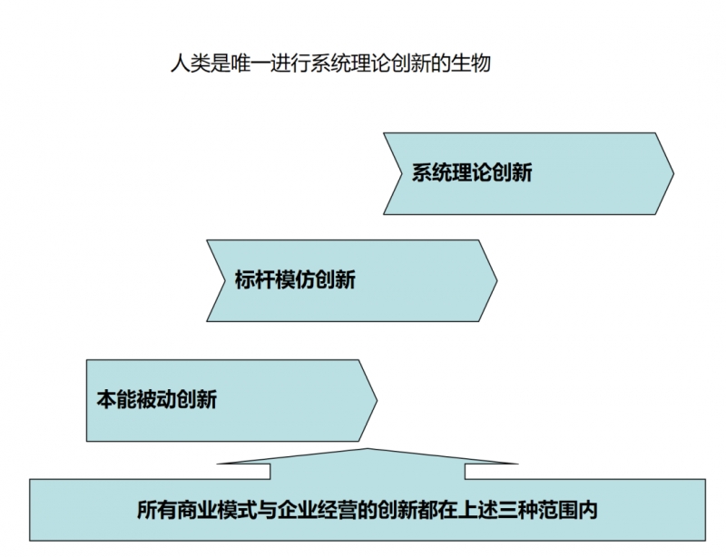 人类与动物的最大区别在于,人不但可以进行本能被动与模仿创新,而且能进行系统理论创新。