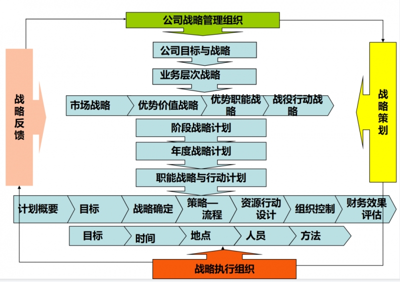 公司战略管规划程体系:从公司发展使命到业务范围、以业务为单位的经营目标和策略的决策。