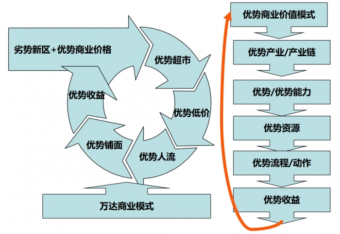 2,优势杠杆商业模式的双向循环。