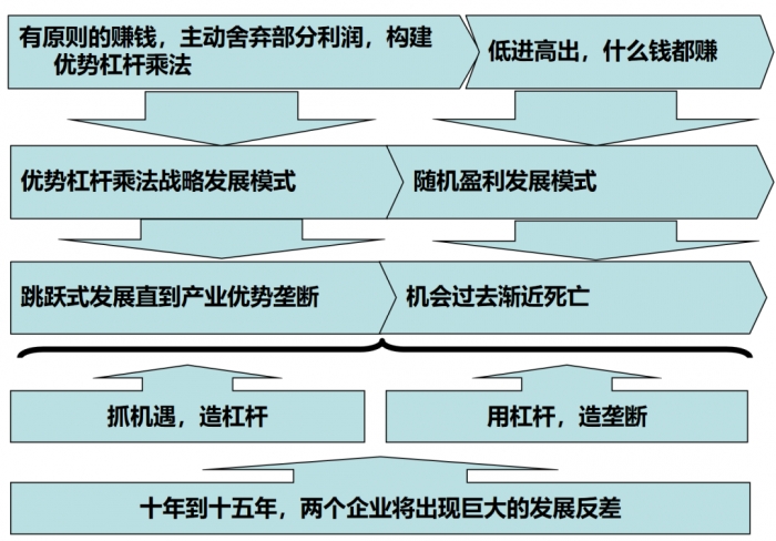 成功企业发展必然是优势杠杆乘法跳跃式增长战略的应用。