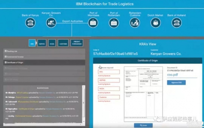 马士基和IBM 使用区块链,开始建立一个全球性的数字化工作流系统,实现贸易和端到端的货物跟踪,该系统允许供应链中的每个利益相关者查看货物的进展情况,也可以看到海关文件的状态、查看提单和其他数据。区块链技术确保安全数据交换和防篡改文件库。预计该解决方案每年可跟踪数千万个集装箱,有可能大大减少延误和欺诈,将给物流业节约数十亿美元的成本。