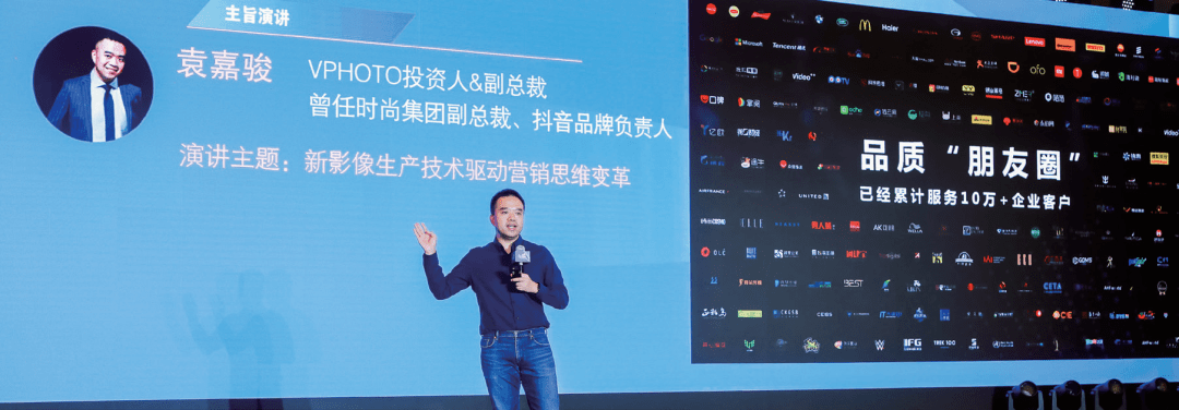 VPHOTO投资人&副总裁,曾任时尚集团副总裁、抖音品牌负责人袁嘉骏发表了题为《新影像生产技术驱动营销思维变革》的演讲,以下内容根据录音整理。