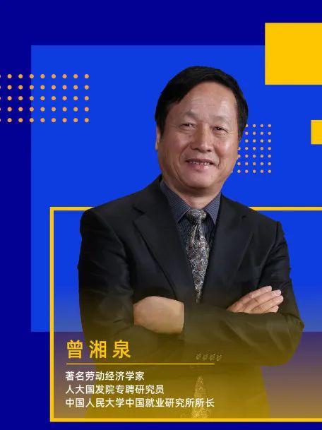 曾湘泉,中国人民大学国家发展与战略研究院专聘研究员,中国人民大学中国就业研究所所长,教育部“长江学者”特聘教授,中国人民大学“大华讲席教授”;曾任中国人民大学劳动人事学院院长(2000-2014);兼任国际雇佣与劳动关系协会(ILERA)执委、德国劳动研究所(IZA)研究员、中国劳动经济学会副会长、中国劳动学会劳动科学教育分会会长、中国人才研究会副会长、工资福利专委会会长、中国就业促进会副会长等。