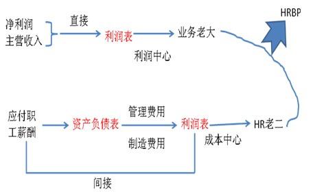 第二层面,对HR部门的绩效考核指标中,人工成本的下降是老板最关注的指标。按照我国会计准则的规定,应付职工薪酬是以会计科目的形式列示在“资产负债表”中,但它如何进入“利润表”呢?在实践中,它是以管理费用(如中高层管理人员工资)和制造费用(如生产管理人员工资)归集到“利润表”中的。所以,应付职工薪酬是间接进入“利润表”的,这也能解释为何HR部门是成本中心。