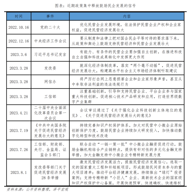 近期集中释放政策红利,提振民营经济信心,支持民营经济创新。2022年中央经济会议提出“从政策和舆论上鼓励支持民营经济和民营企业发展壮大”。2023年3月6日习总书记提出“有能力、有条件的民营企业要加强自主创新,在推进科技自立自强和科技成果转化中发挥更大作用。”3月20日工信部发声“注重基础创新,引导和支持民营企业、平台企业参与国家重大科技创新,促进核心技术产品研发和应用,打造世界级数字产业集群”。7月19日“民营经济31条”提出“支持提升科技创新能力,加快推动数字化转型和技术改造”。8月1号发改委等部门发布促进民营经济发展28条举措,破解民营经济发展中面临的突出问题,激发民营经济发展活力,提振民营经济发展信心。