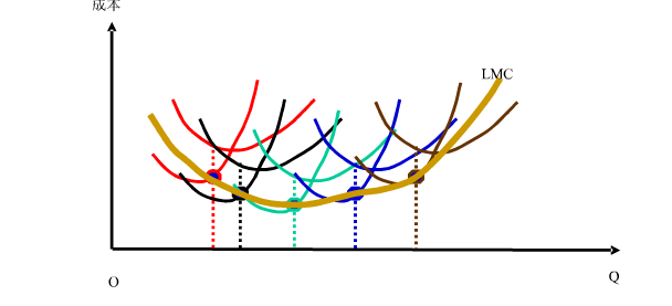 有两个应对方向,一个方向是开启新的成本曲线,找到向右下方的一条曲线,形成一条切线,是长期向下的成本优势。