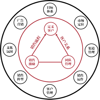 构建销售体系元素有很多,销售系统基础由5个模块组成,客户定义决定了销售系统的方向,流程和客户关系是销售系统的支撑,激励与销售团队管理是销售系统的基石。这5个模块构成了一个最小的销售体系,在此基础上可以继续向外延伸出更加庞大和复杂的销售系统。