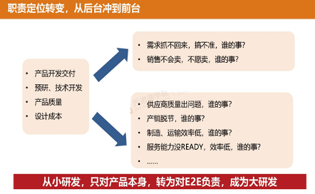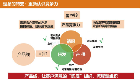 通信标杆企业华为经常强调端到端流程,E2E,End to End,即从客户需求到客户满意,从客户中来,再回到客户中去!华为内部有一个理念,也是华为集成产品开发IPD的核心思想之一:产品的商业成功是一个重量级团队的集体责任,研发工作必须从后台冲向前台,对产品E2E经营负责。