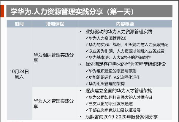 《学华为.人力资源管理实践分享》两天培训课程大纲
